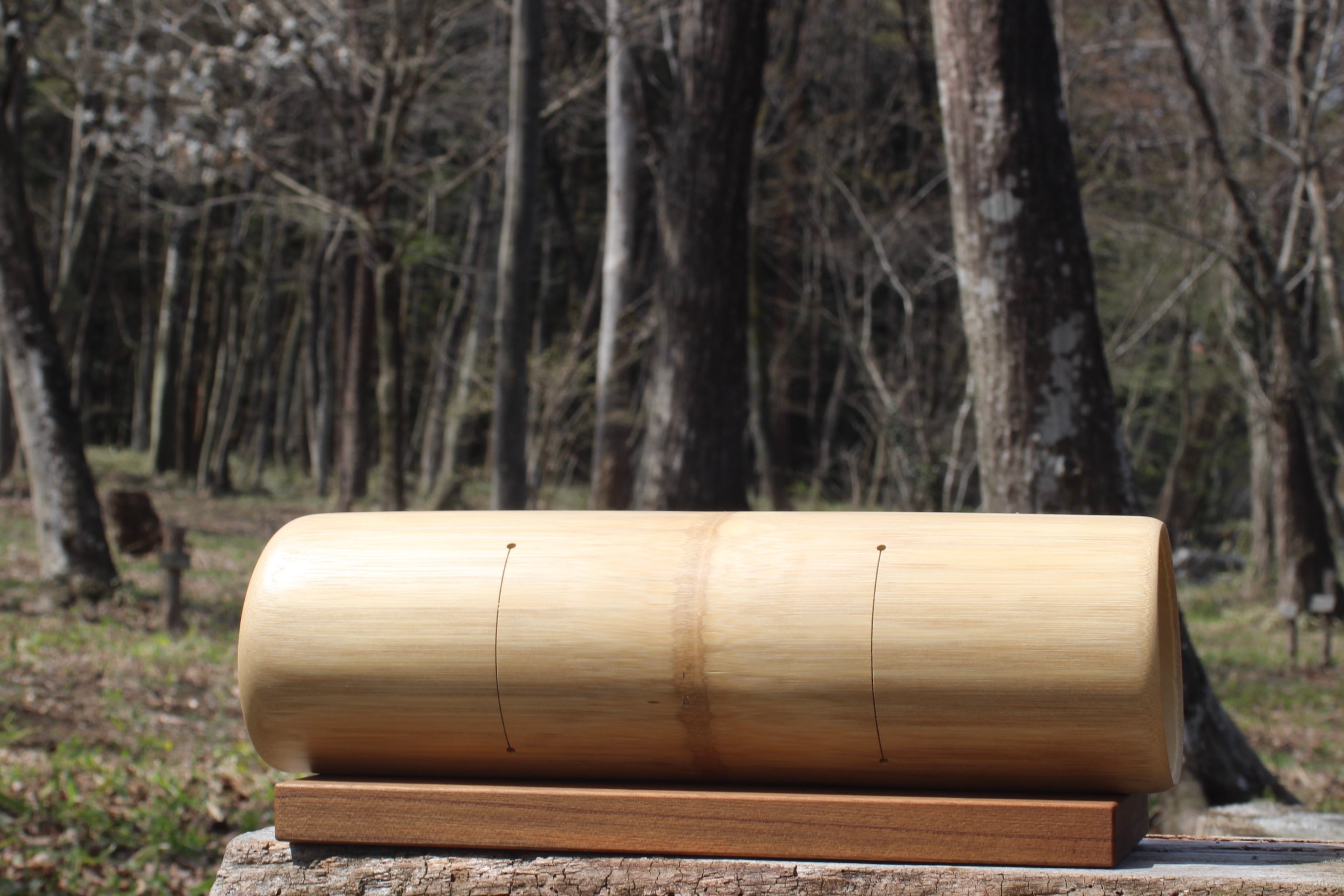 新月日伐採竹使用。2025年、5穴モデル。口径、全長ともにひびきの起点とするに十分な大きさ。両端のテーパーがほんの少し角度が出ています。全長がほんの少し長いので、この角度が出ていると収まりの良い外観になります。
