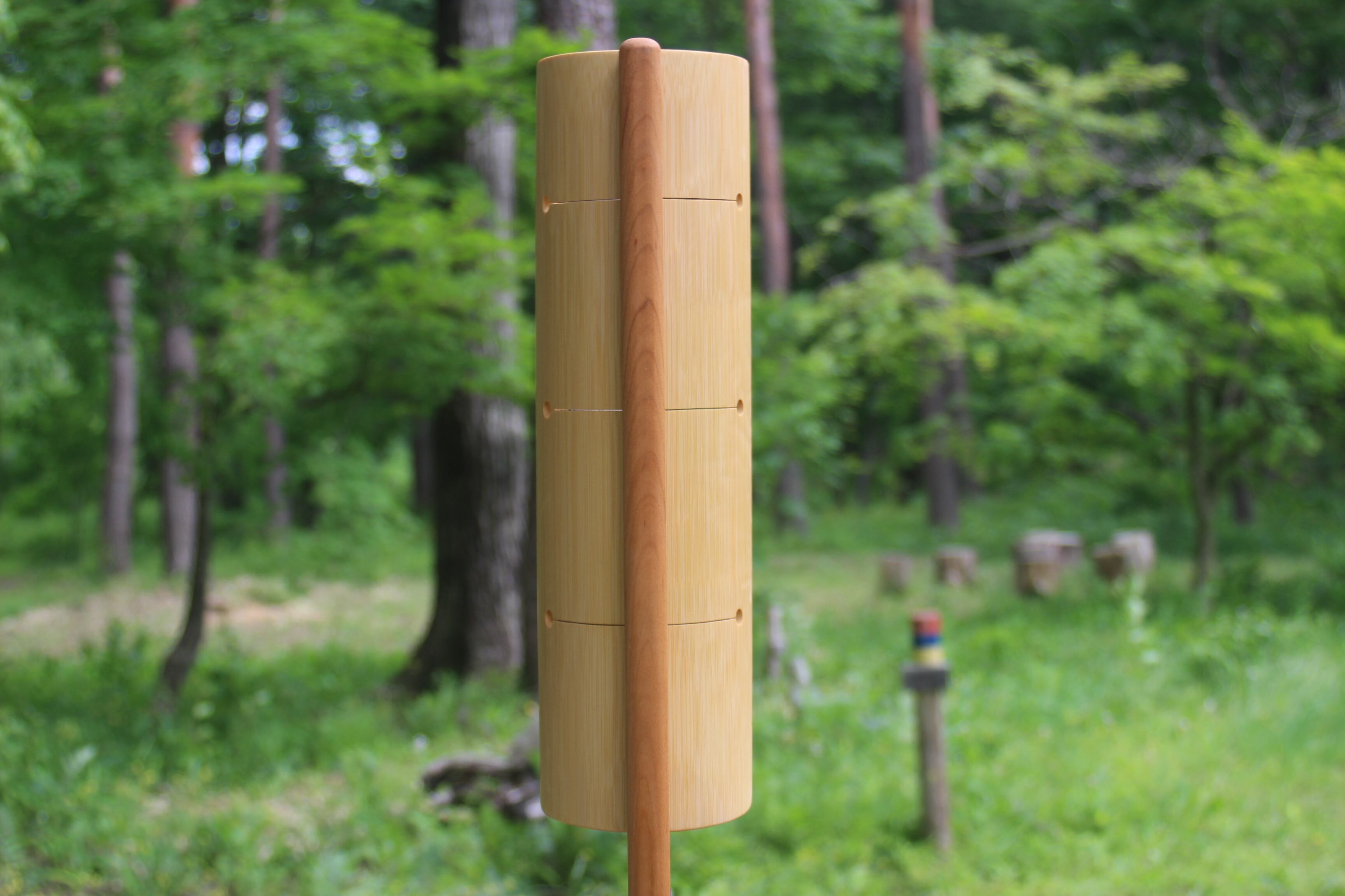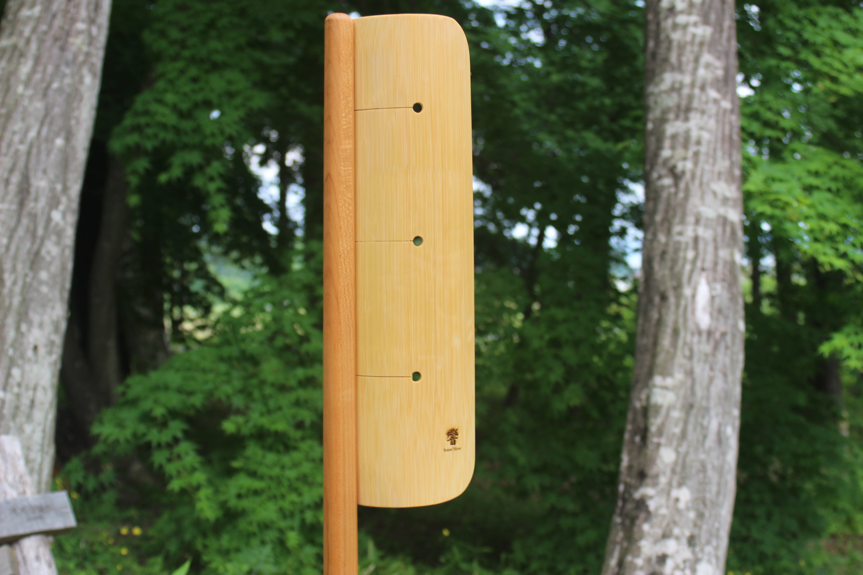 スタンドはヤマザクラ製。第2号機からはミズナラとブラック・ウォルナット製を予定。
